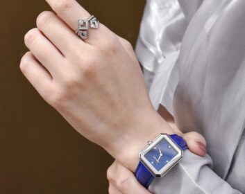 月のモチーフをあしらった Luna コレクションは、小宇宙をマザーオブパールで表現し、ダイヤモンドを星々の煌めきのようにセッティングしています。ネイビーカラーのアリゲーターベルトが上質でエレガントな印象をあたえます。Lunaステンレス / ダイヤモンド / マザーオブパール ベルト :アリゲーターネイビー / カーフ ( 裏 ) 左:396,000 円(税込) 右:1,089,000円(税込)
