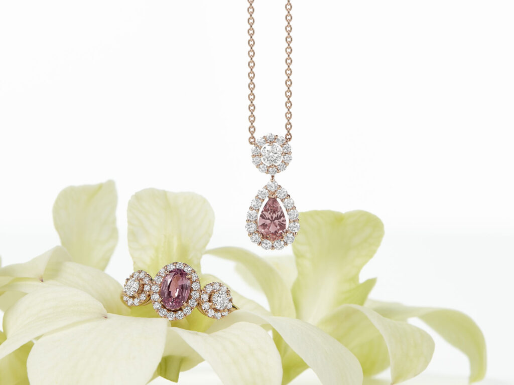 あらゆる女性を魅了するピンクダイヤモンドがリング側面にさりげなく輝きます。