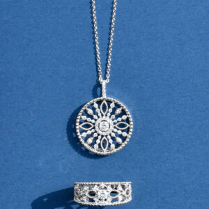 まるでレースを思わせる細工が施されたリングは、確かな存在感がありながらも軽やかな印象に。