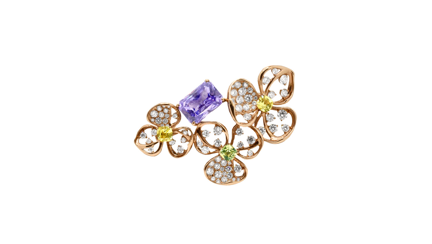 一つの花に120ピース以上のダイヤを使用し、サイズは0.05mm単位で調整。